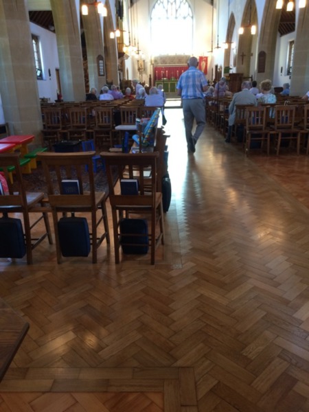 A selection of interior photos of the church during various services after the floor restoration in 2018