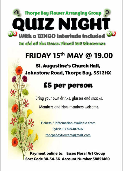 12 th December Nick Grounds “Jingle a partridge with tinsel” Flower Workshops – A small informal group workshop opportunity to practice your flower arranging skills with members of the club at St. Andrews Church Hall, Church Rd, Shoeburyness, SS3 9EU.