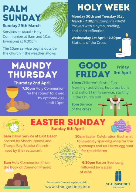 Below you will find a list of special events coming up. To see regular services and what's happening in church this week, please see the Calendar.
